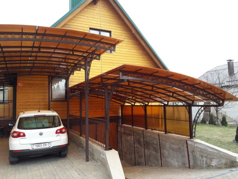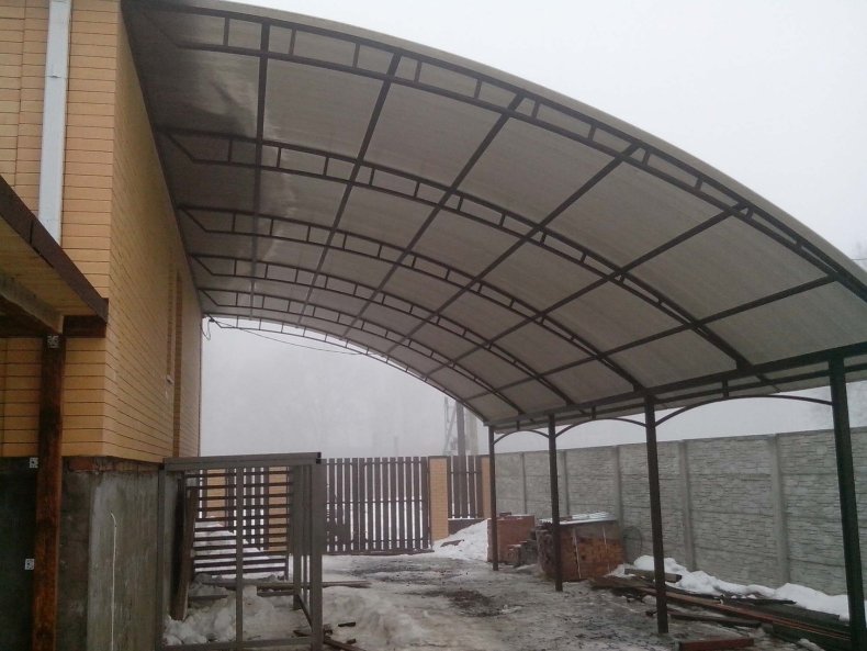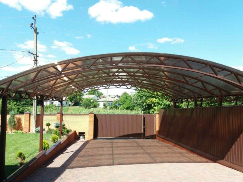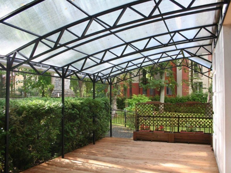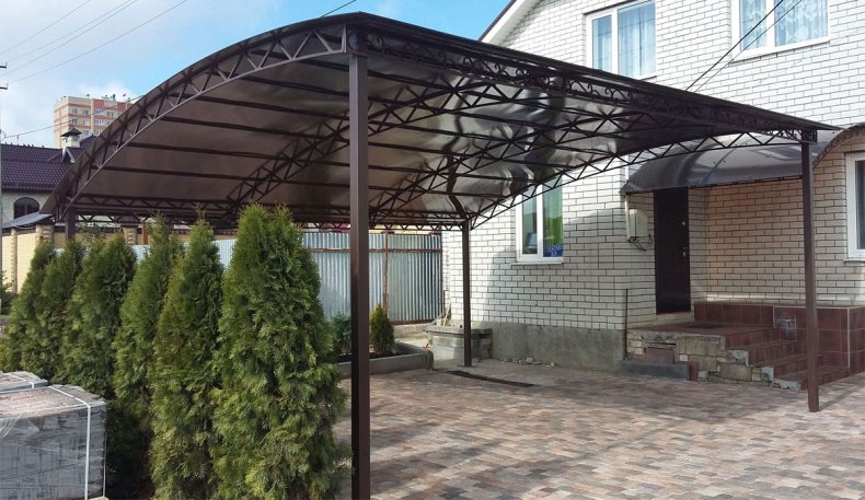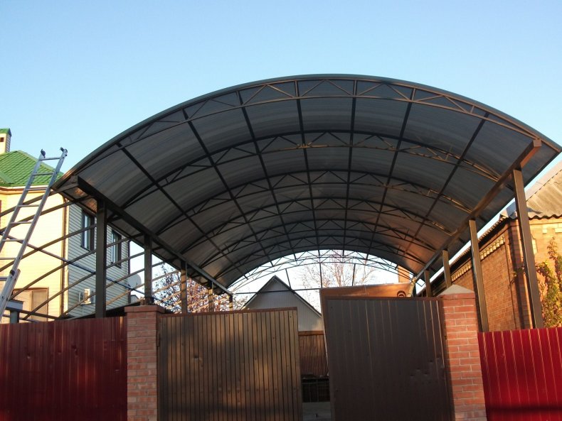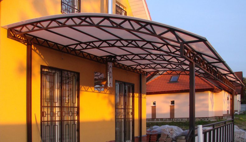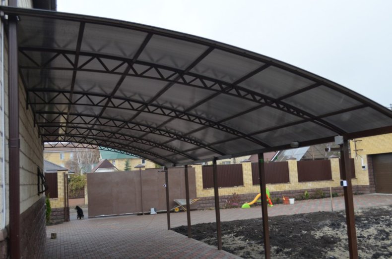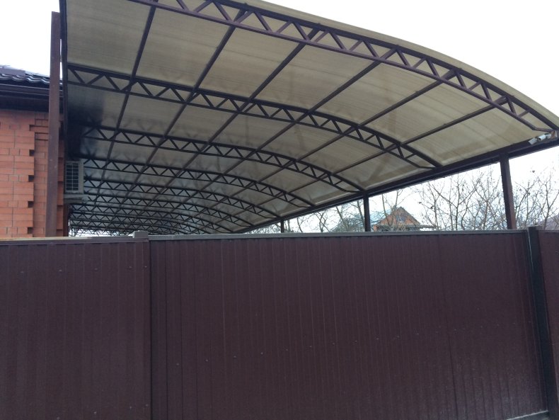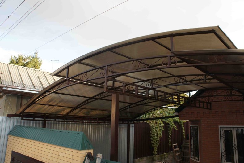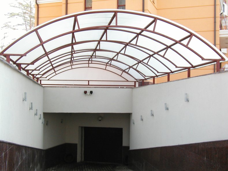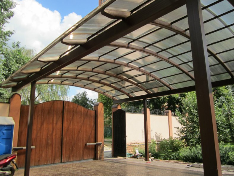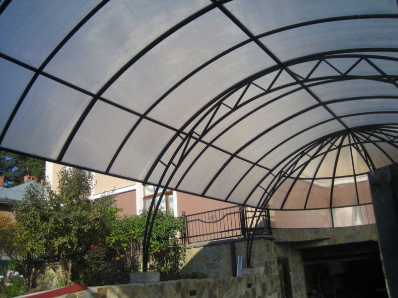 Если вам необходимо освещение площади под навесом, то лучше взять прозрачный поликарбонат. А если освещение будет искусственным, то вы можете отдать предпочтение темным оттенкам поликарбоната или вообще другим материалам.