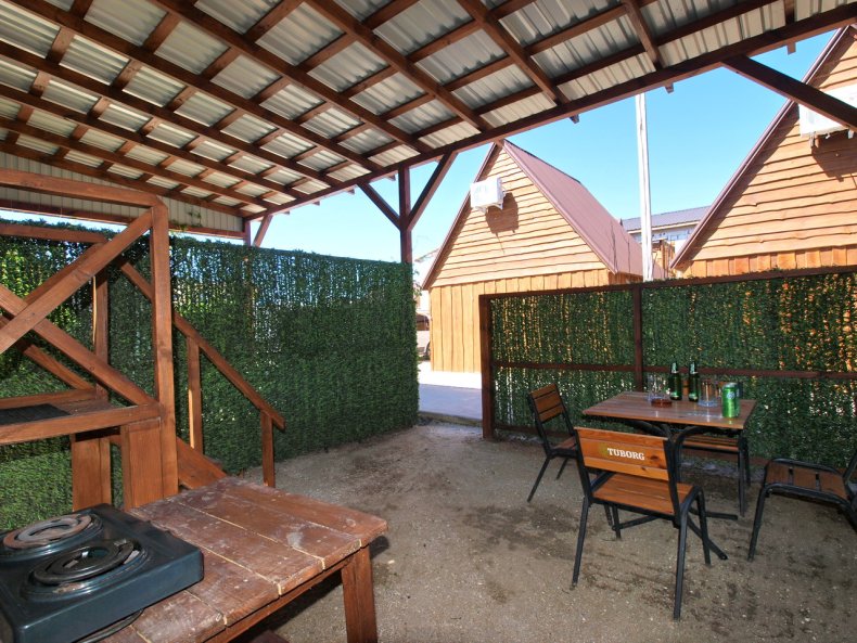 - Если под навесом вы собираетесь устанавливать мангал, то на деревянный пол важно установить металлическим лист толщиной 1-2 мм. Таким образом вы сможете защитить дерево от перегрева и случайного возгорания.