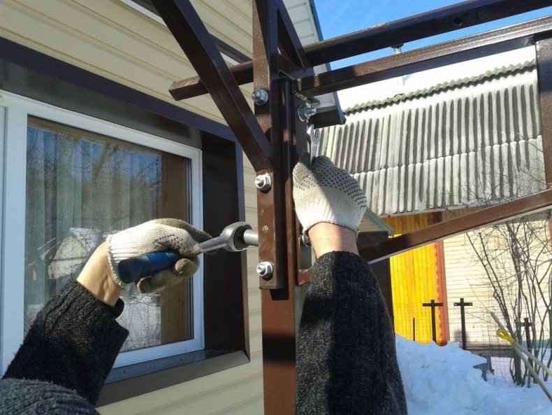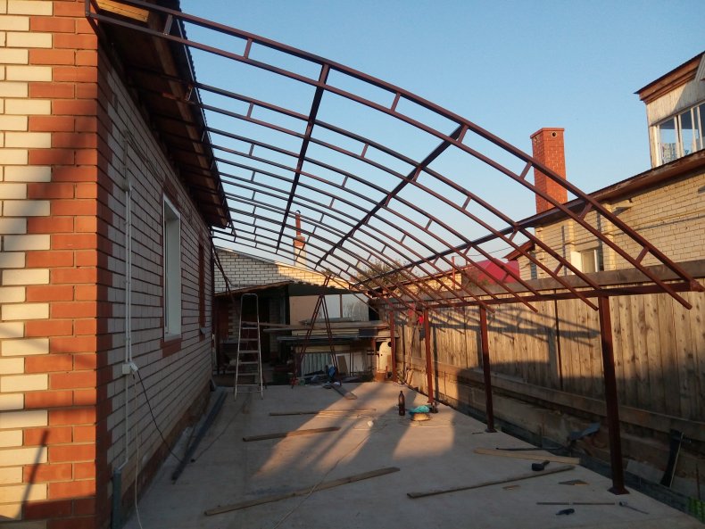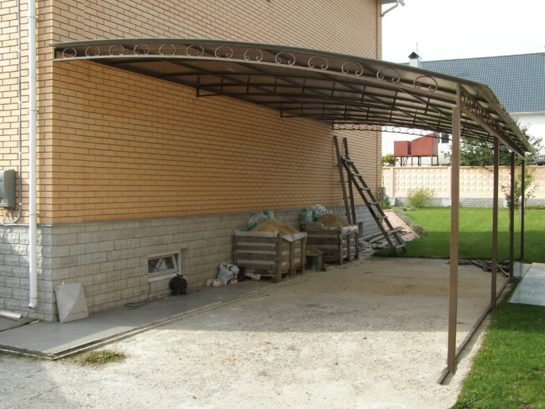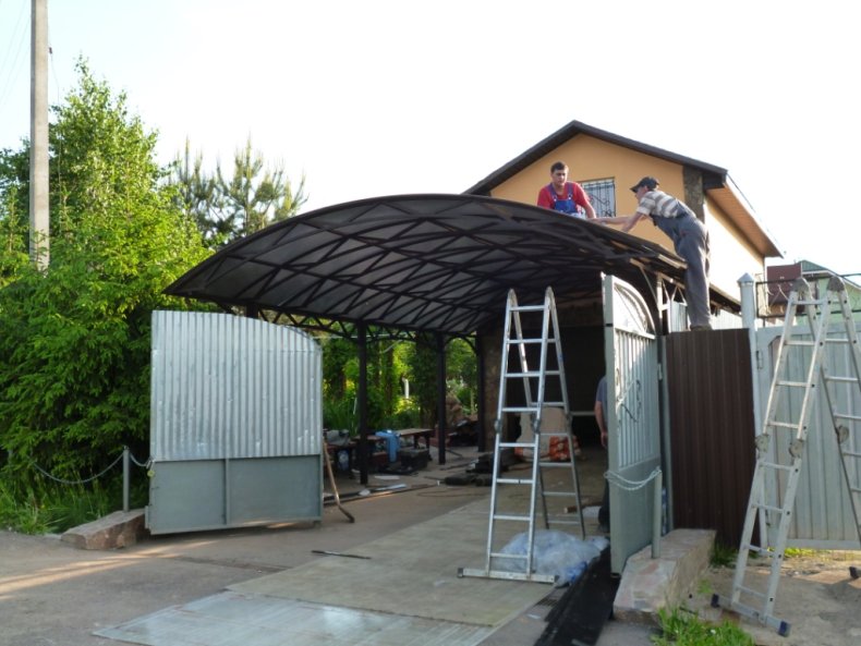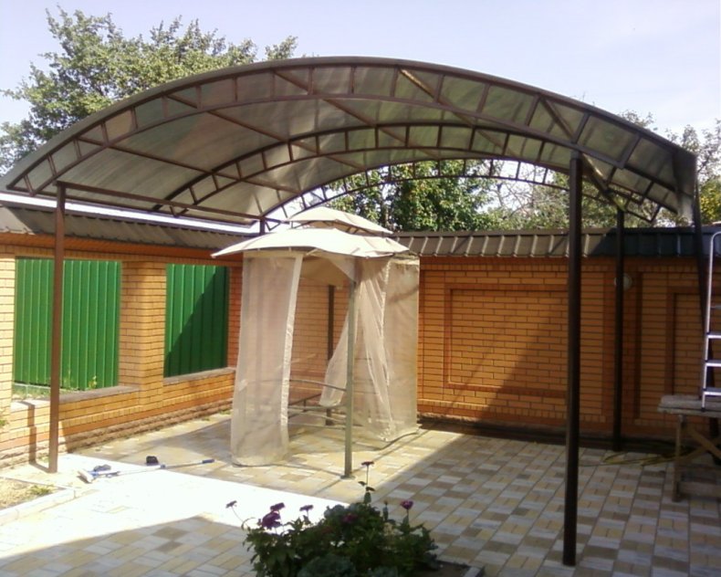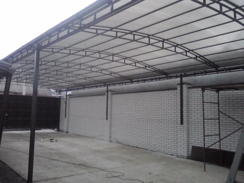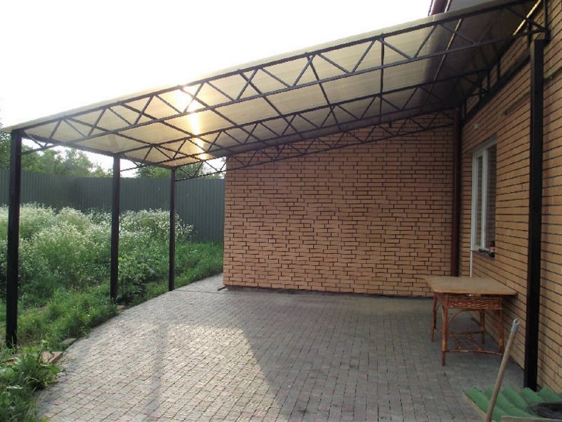Навес своими руками во дворе частного дома: способы изготовления самого простого и дешевого варианта из металла, и поликарбоната