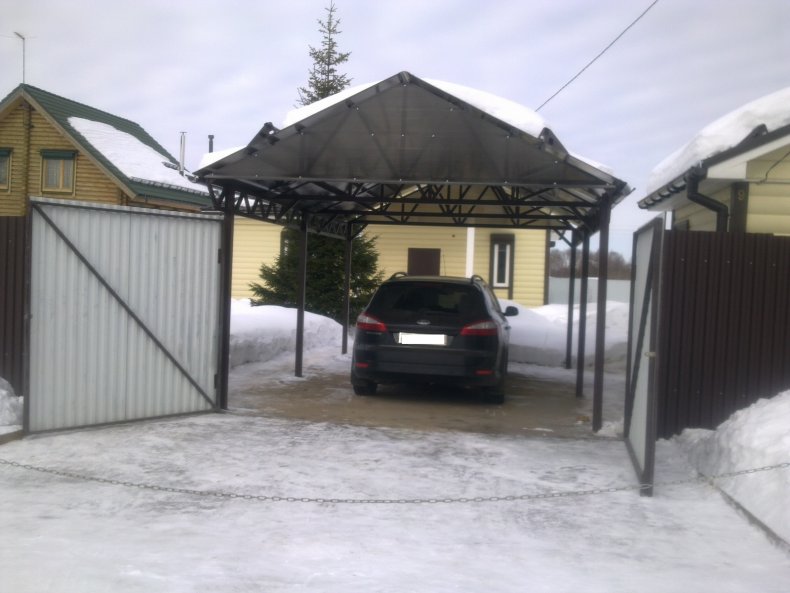Если финансы позволяют, то лучше сразу закупиться качественными и долговечными материалами. Так как если вы сэкономите на закупке материалом, то в дальнейшем придется часто ремонтировать навес.