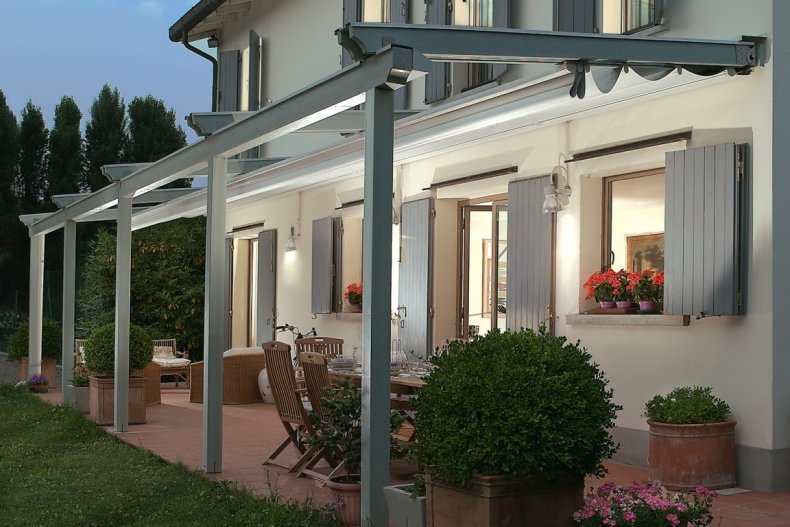 В постройке навесом частных домов тент практически не применяется, в основном он используется при создании временных навесов для проведения строительных или иных работ.