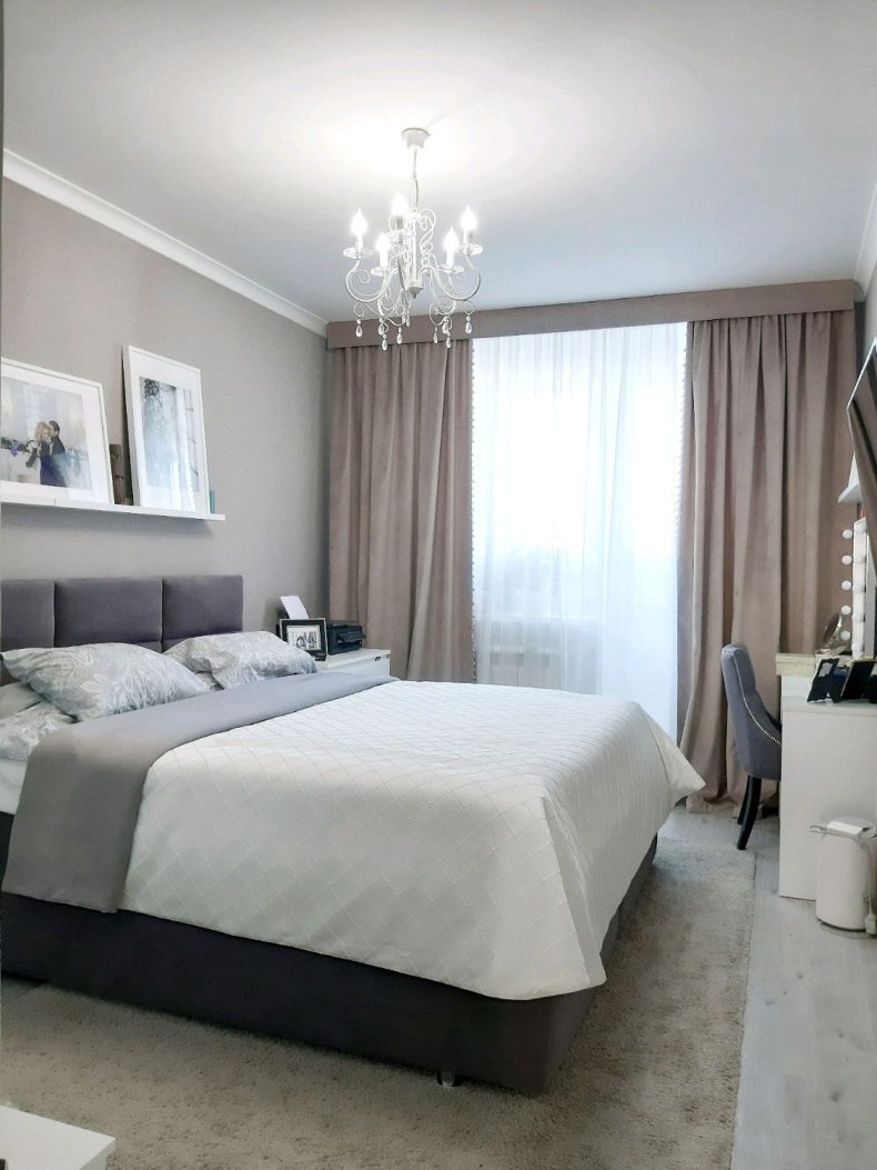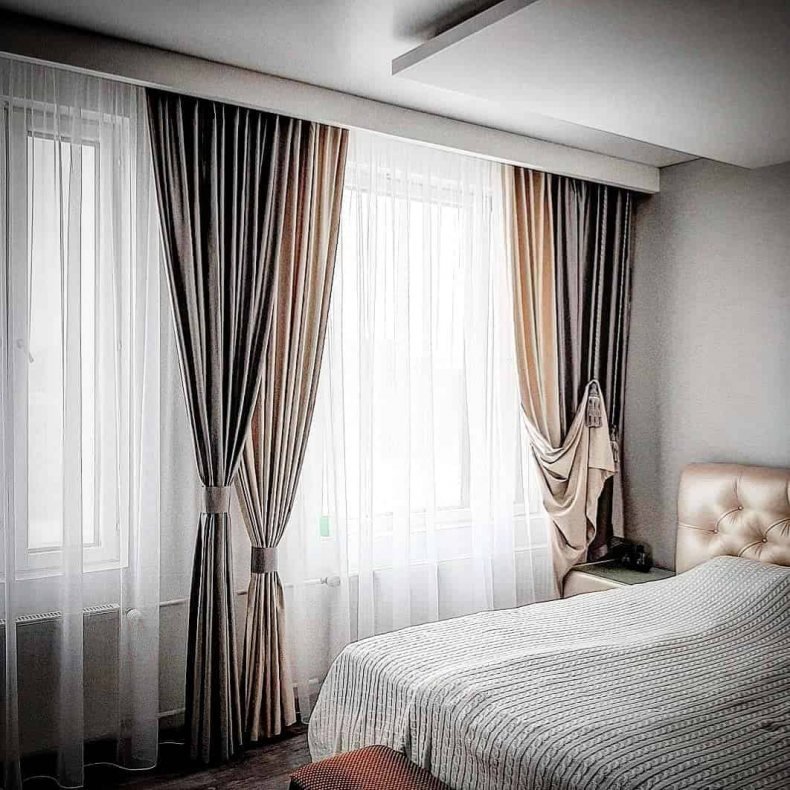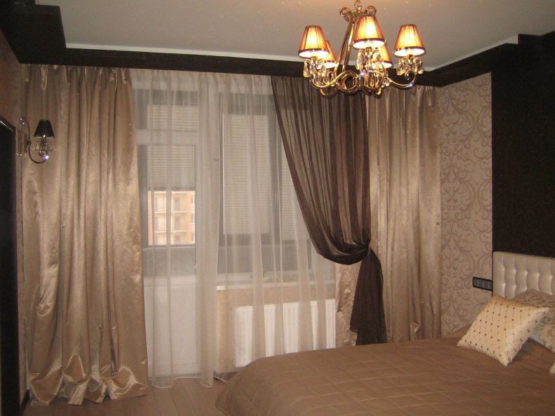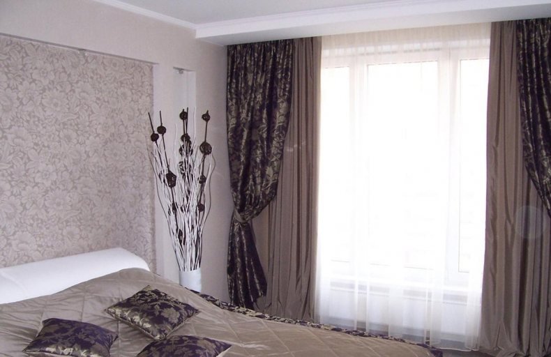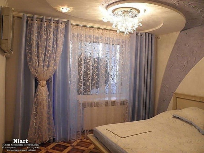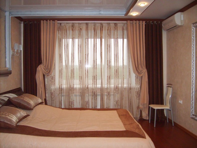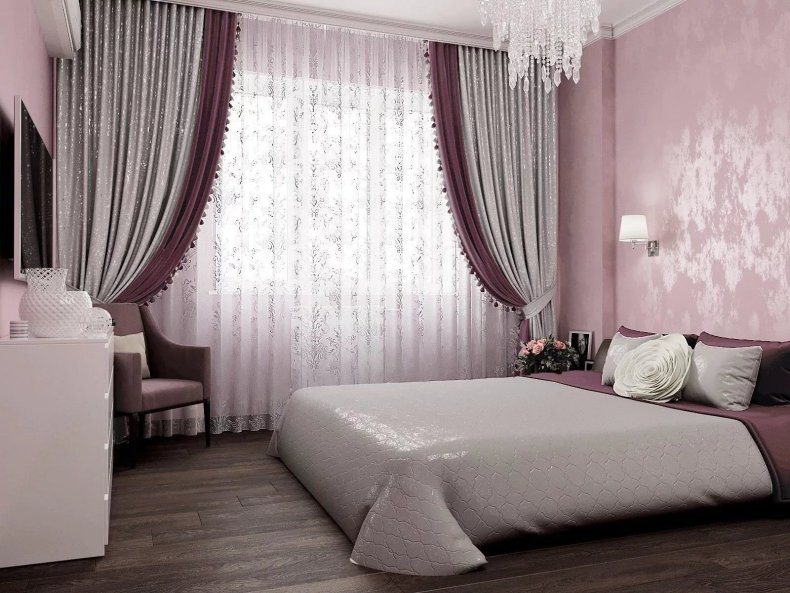 - Не стоит выбирать для спальни темные оттенки. Зрительно они уменьшат и приблизят оконный проём.