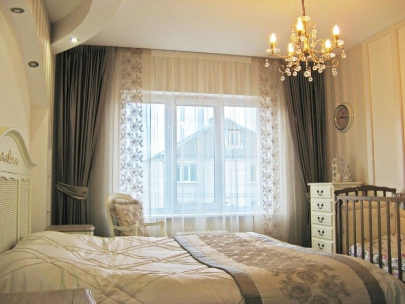 - Для спальни лучше не выбирать тюль темных однотонных оттенков. Также не стоит использовать принты и орнаменты.