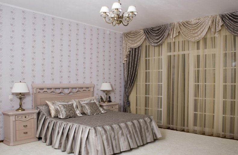 - Чем спокойней будет полотно, тем лучше, ведь спальня – это место отдыха, а значит нельзя допускать наличие всевозможных давящих и отвлекающих деталей.