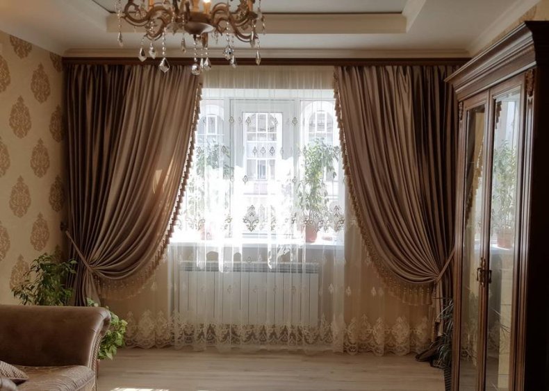 Оттенки должны быть глубокие и насыщенные, это поможет подчеркнуть лоск и дороговизну оконного убранства.