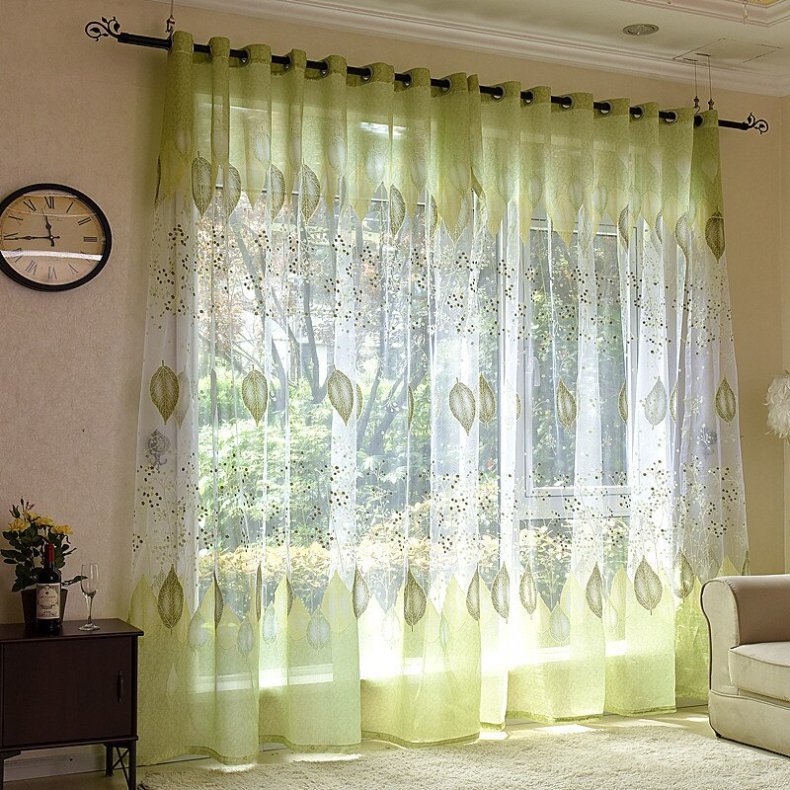 - При выборе тюля стоит учитывать цвет стен. Чем светлее стены, тем красочнее и сочнее должен быть оттенок тюля.