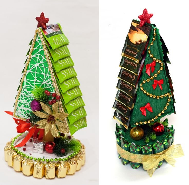 В статье приведено несколько вариантов создания сладкой новогодней композиции, среди которых любой человек может найти наиболее подходящий.