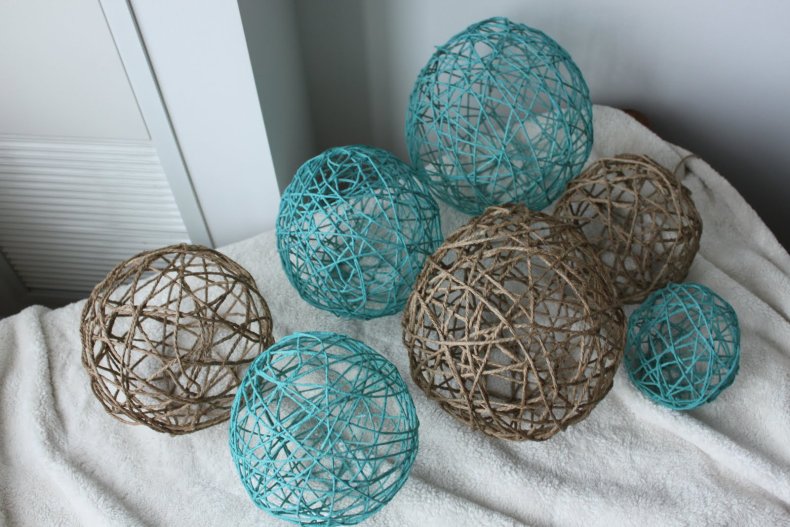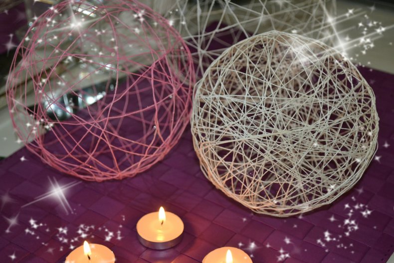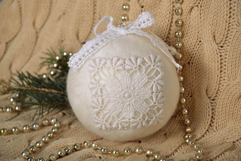 Красочный, стильный шарик из ниток мастерить интересно и легко. Для поделки необходимо приготовить нитки белого цвета, воздушный шар, тюбик клея, различные декоративные элементы.