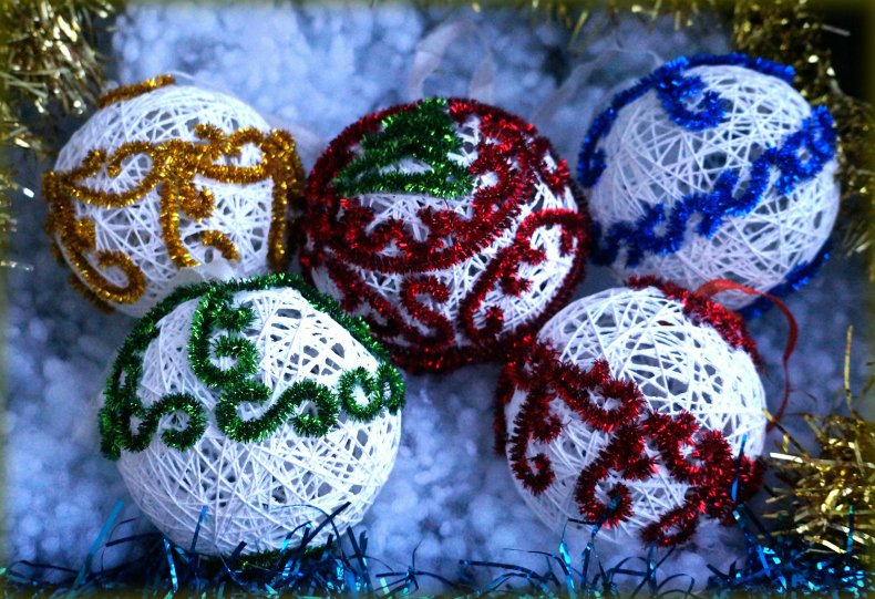 Новогодние шары своими руками: пошаговый легкий мастер-класс по созданию ёлочных украшений из ниток, бумаги, фольги и пенопласта