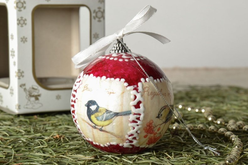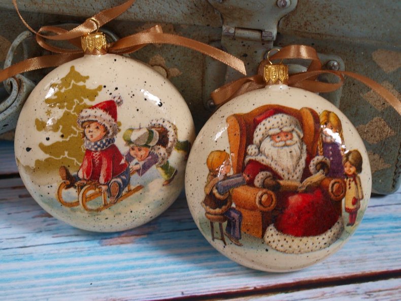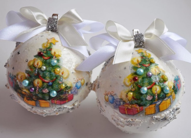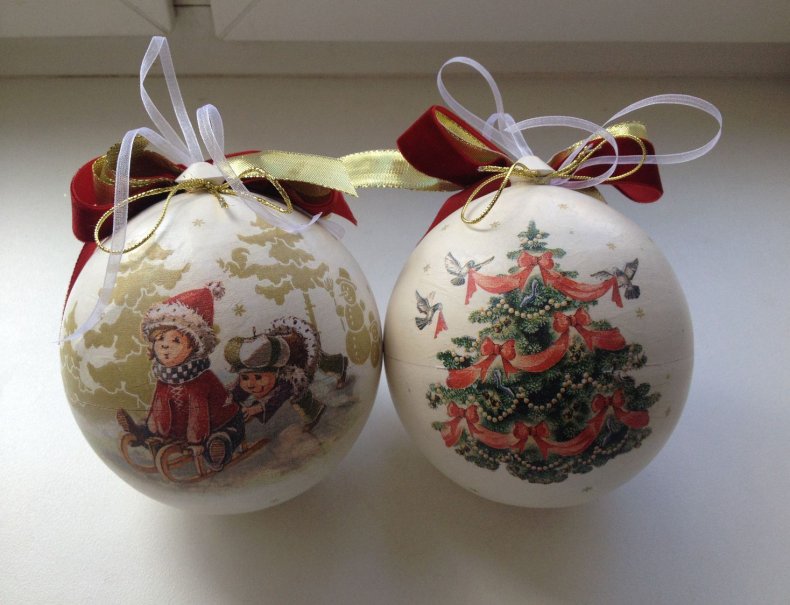 Прекрасные шарики получаются при оформлении их в стиле декупаж. Этот способ знаком всем мастерам рукоделия.