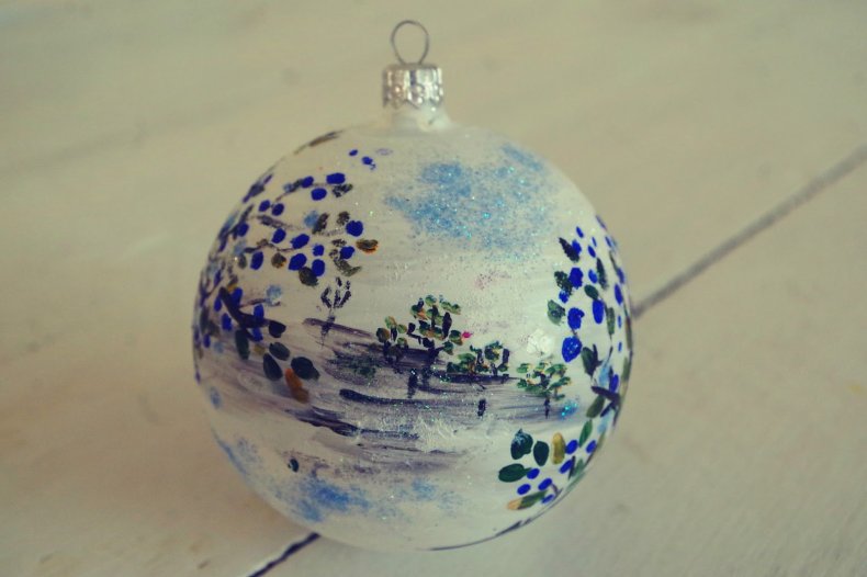 Украсит новогоднюю елку, и внесет в ее декор изюминку, композиция с рисунком.