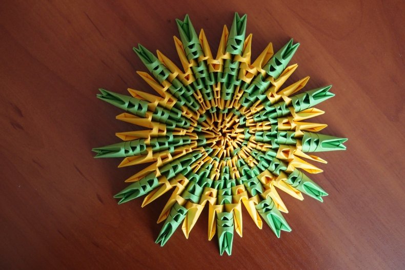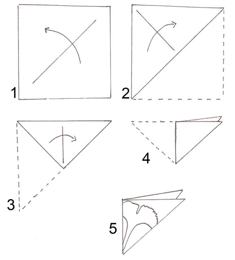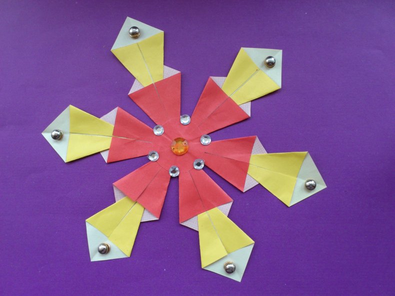 - Полученный треугольник разворачивается, все боковые части сворачиваются к центру фигуры.