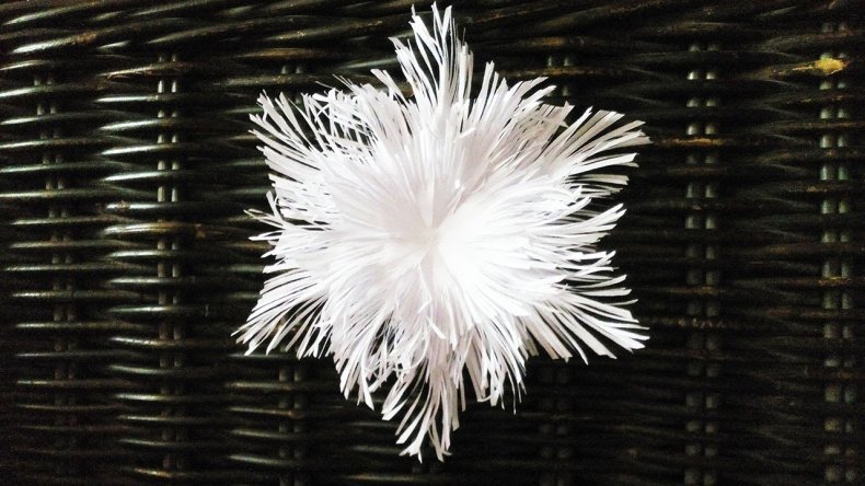 - Вдоль фигуры совершаются достаточно длинные надрезы. От количества разрезов определенно зависит, насколько пушистая будет снежинка.