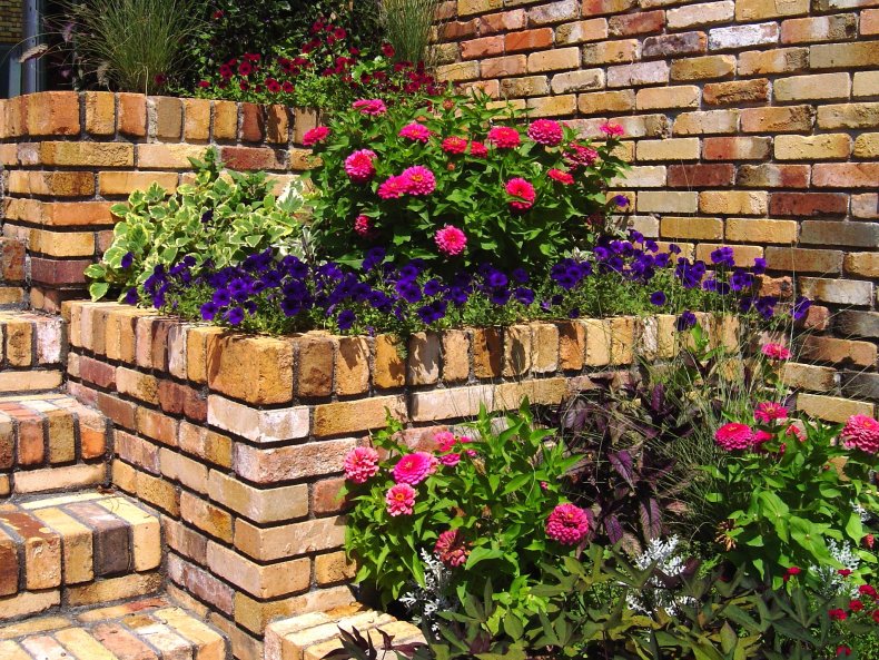 В цветниках с постоянным местом делают капитальную кирпичную кладку, она может быть любой высоты.