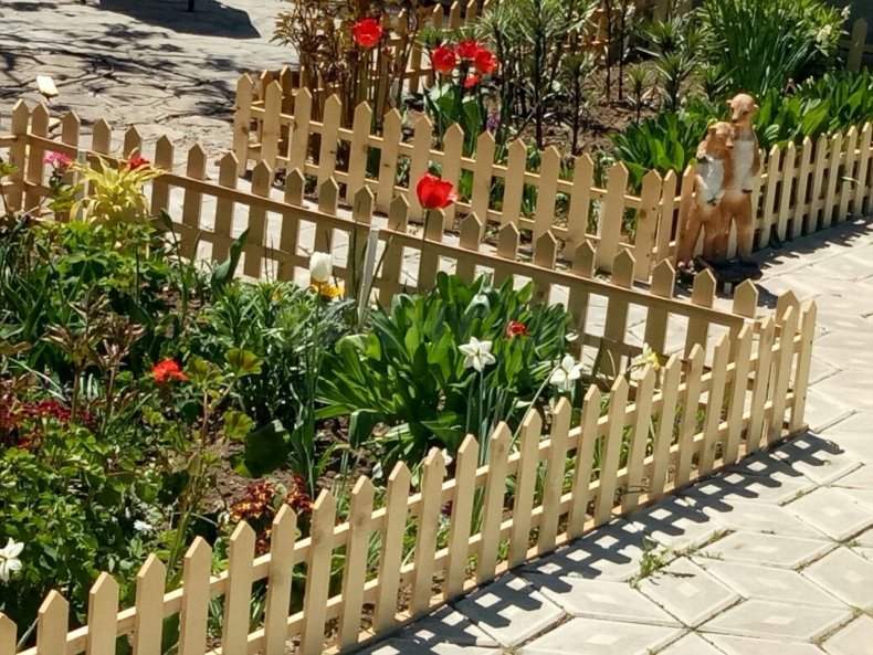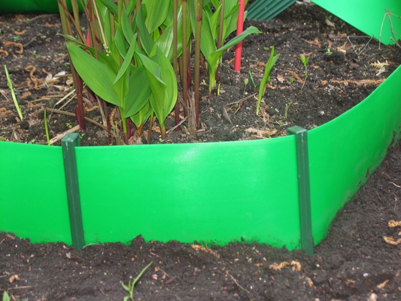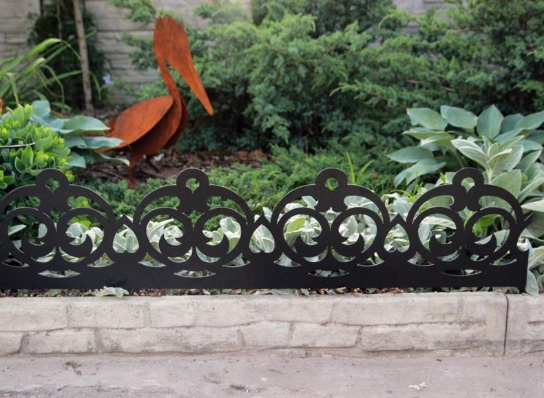 Если совсем нет времени или желания делать ограждения своими руками, помогут купленные в магазине заборчики. Они бывают пластиковые и металлические, разных цветов и конфигураций, имитирующих любые натуральные материалы (камень, дерево, кирпич).
