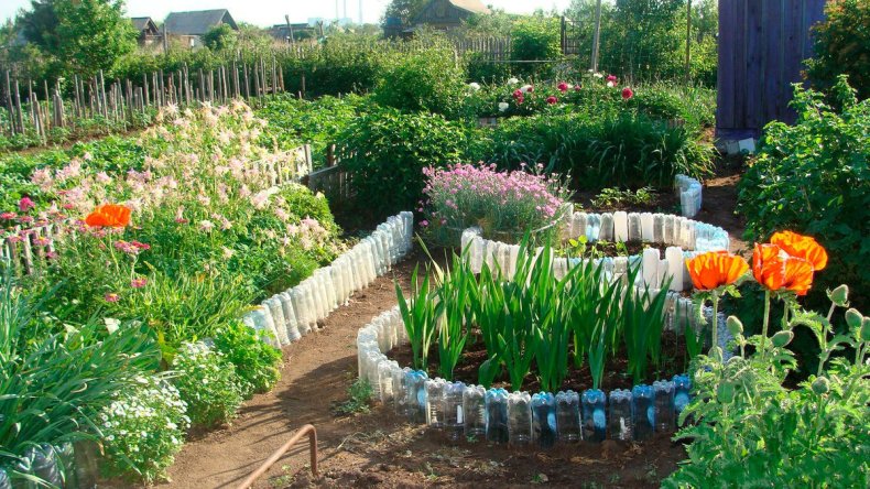 Прежде чем выбрасывать остатки стройматериалов или обычную стеклотару, подумайте, не пригодится ли вам это для оформления грядок и цветников. Скорее всего вы найдёте им применение.