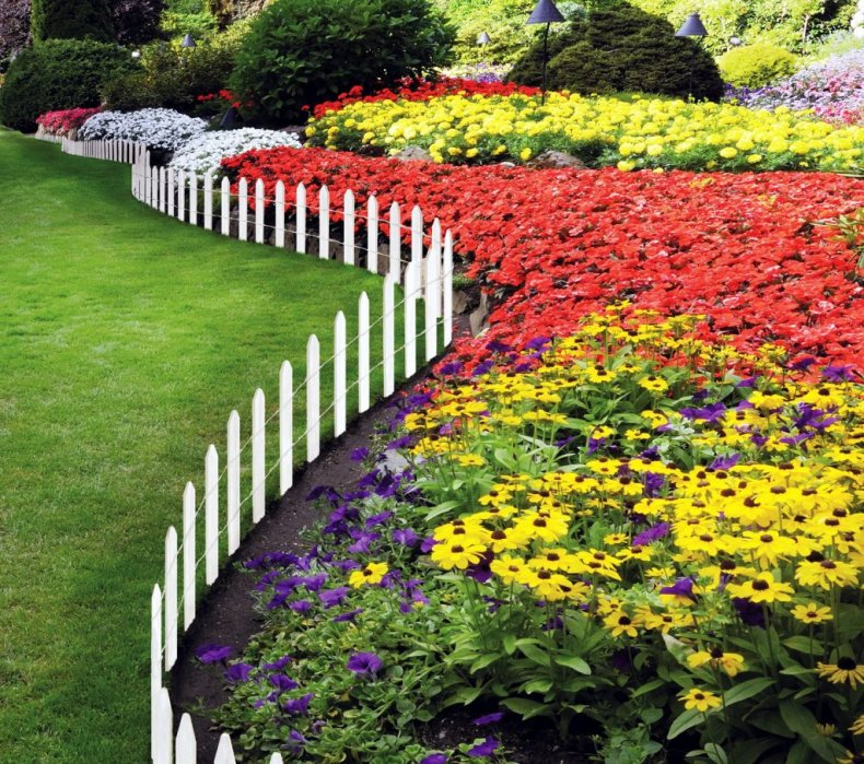 Огороженная композиция становится совершенной и законченной. Бордюр выделяет цветник в ландшафте, акцентирует на нём внимание и выполняет ряд других полезных функций.