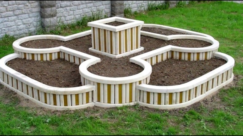 Изготовление бордюров из бетона трудоёмкий процесс, требующий определённых навыков. Их делают в цветниках, которые не будут никуда перемещаться, потому что разобрать, не сломав, будет невозможно.