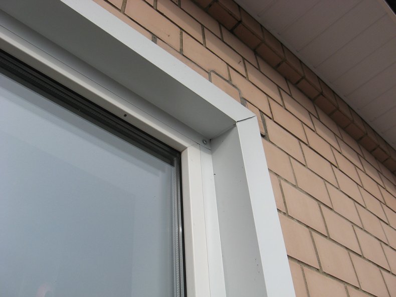 - F-образный профиль монтируется по внешней стороне откосов, для качественного соединения в углах, срезается под 45 градусов.