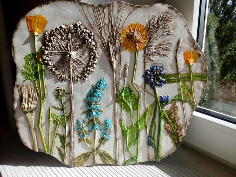 Существуют еще несколько видов панно, которые изготавливаются за счёт соленого теста, бисера, сухоцветов…