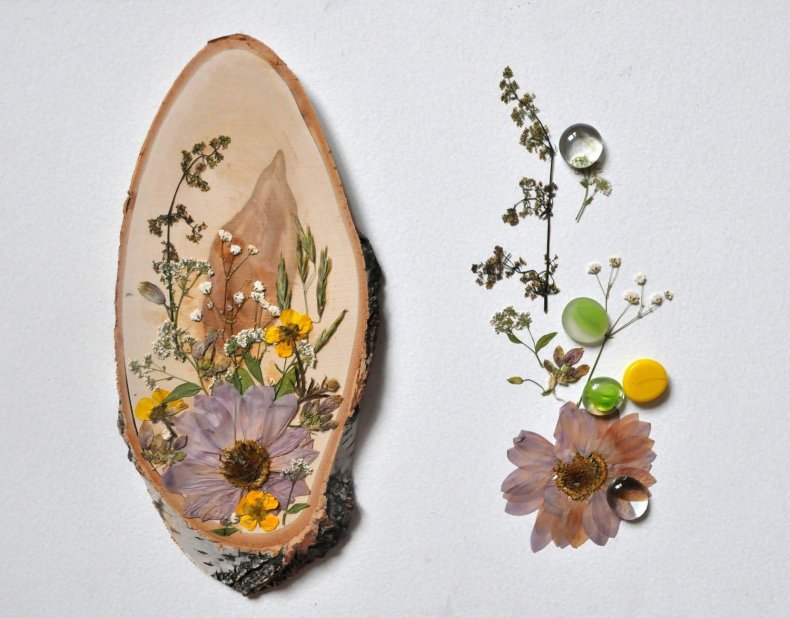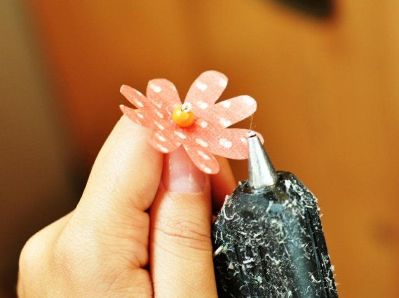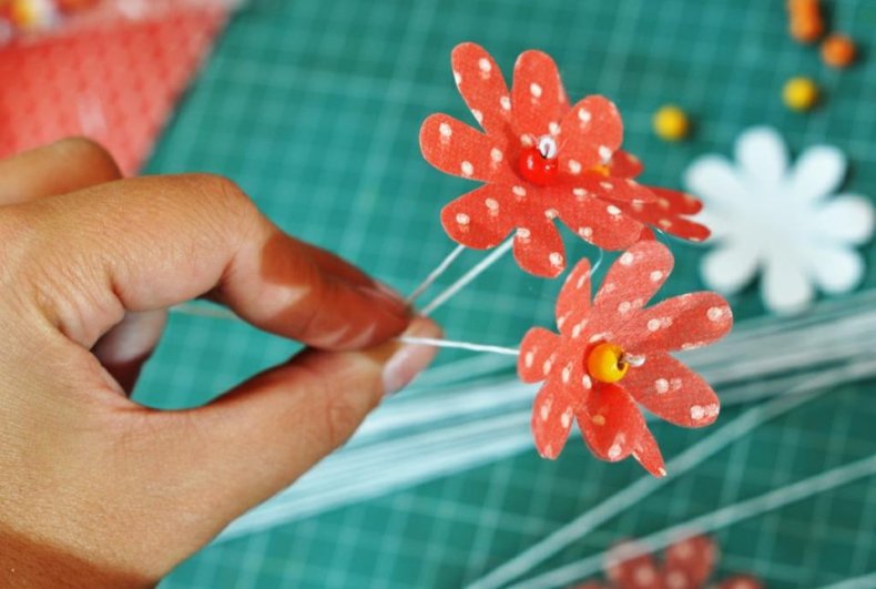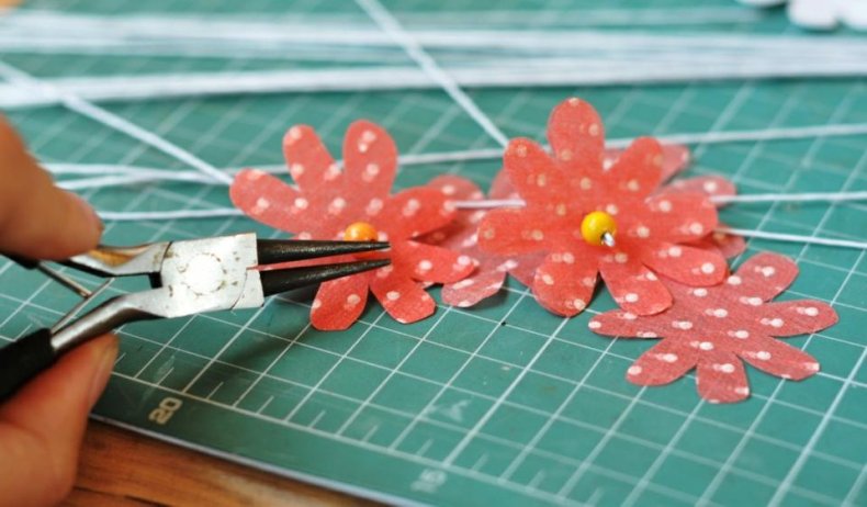 - Приклеить еще желаемое количество цветочков.