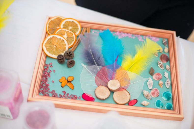 - Если панно создается из сыпучих материалов, то лучше всего разрисовать его акриловыми или акварельными красками, а затем покрыть тонким слоем прозрачного лака.