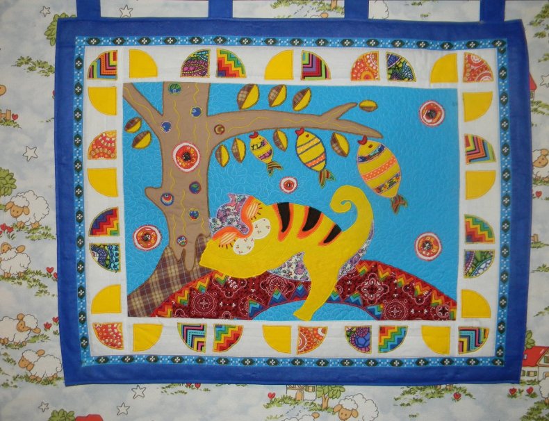 - Тканевые – одни из самых оригинальных видов, которые включают в себя различные варианты вышивки, применение аппликаций из разного вида тканей. Панно такого вида можно сделать вручную или с помощью швейной машинки.