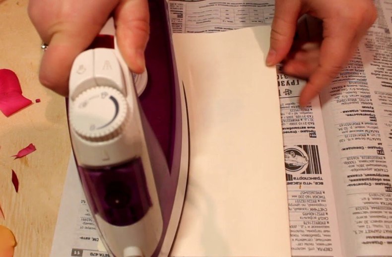 - Выложить 5 больших лепестков, затем маленькие, для того, чтоб они скрепились нужно немного смочить водой.