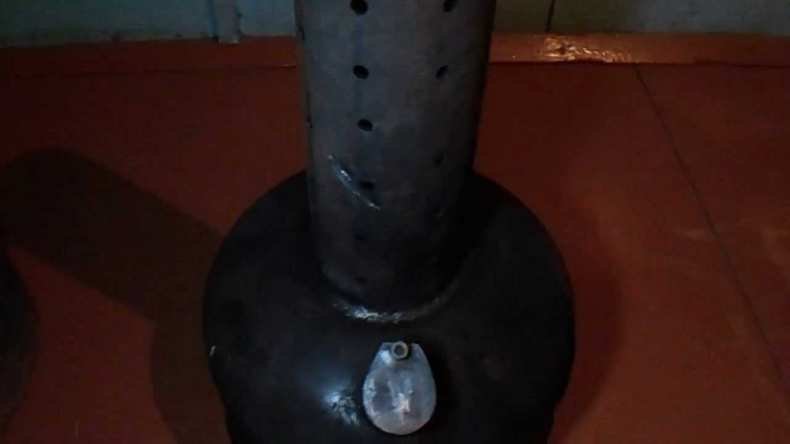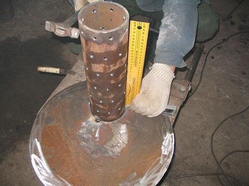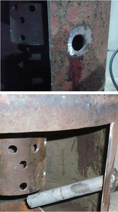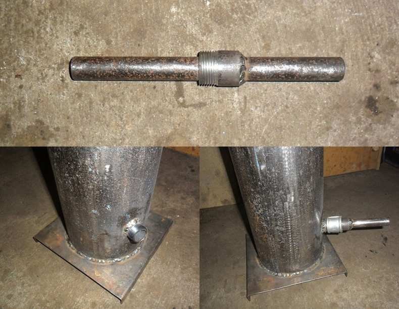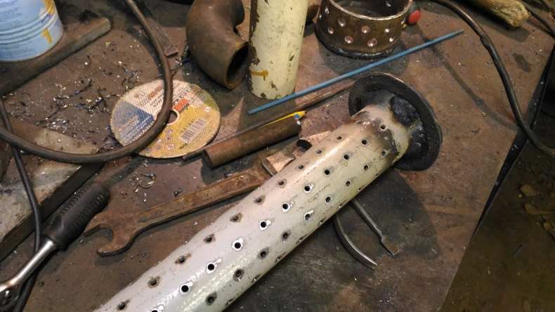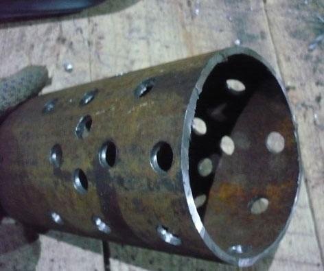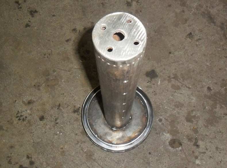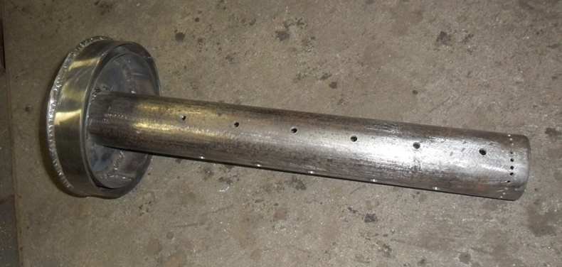- Собранная штанга с отверстиями монтируется внутрь баллона. В верхней части крышка приваривается к стенкам.