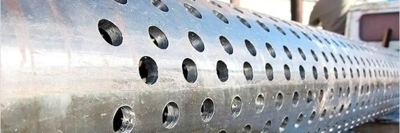 - Просверлите 6 рядов по 8 отверстий диаметром в 1 см. Все отверстия важно просверлить равномерно на 45 см участке трубы с заваренным торцом.