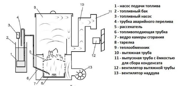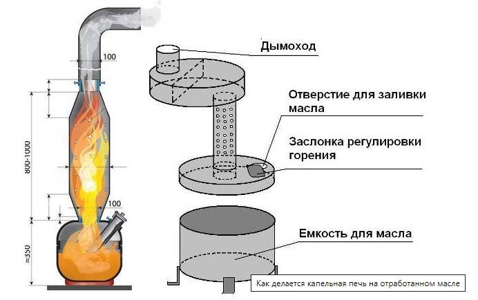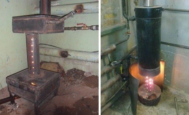 - Данная конструкция считается безопасной, так как горят пары отработанного масла, а не оно само.