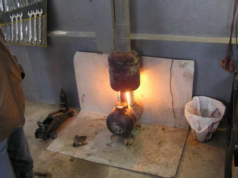 Печь на отработке может быть выполнена различными методами. Она сгодится в качестве основного источника отопления мастерской или гаража.
