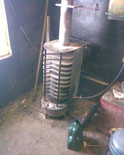 - Накопительный бак с отработкой следует заполнять лишь на 70%, сверху следует долить 30-40 мл бензина для быстрого розжига печи.