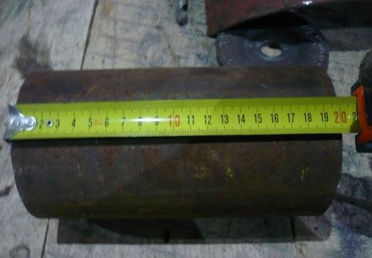 - Далее необходимо изготовить резервуар для отработки, для этого возьмите стальную трубу диаметром 14 см, отрежьте от нее кусок длиной 10 см.