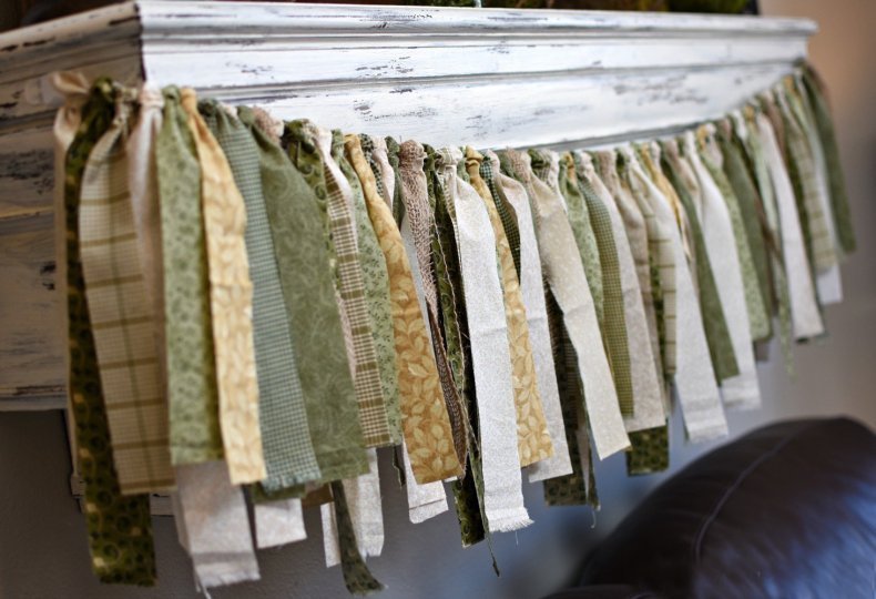 - Сегодня гирлянды выполняют не только из бумаги или шаров, для этого отлично подойдет любая материя, в качестве которой могут выступить ненужные вещи.