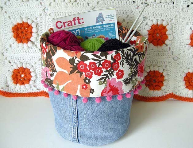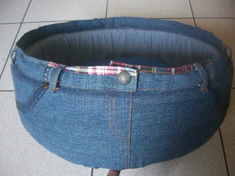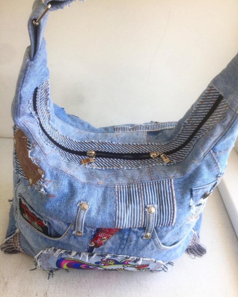 Также из джинсов можно сделать интересную вместительную сумку, для чего потребуется верхняя часть с карманами, далее к ней можно пришить ручки и сделать дно из остатков брюк.