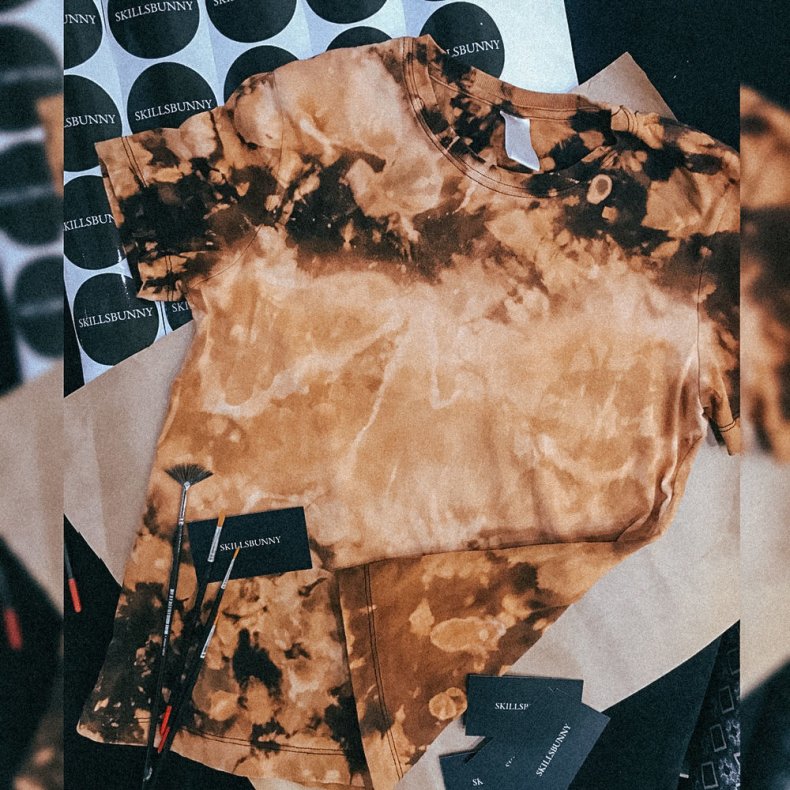 - Разбрызгать неравномерно по футболке (будут оставаться рыжеватые пятна), после чего оставить изделия на один час.