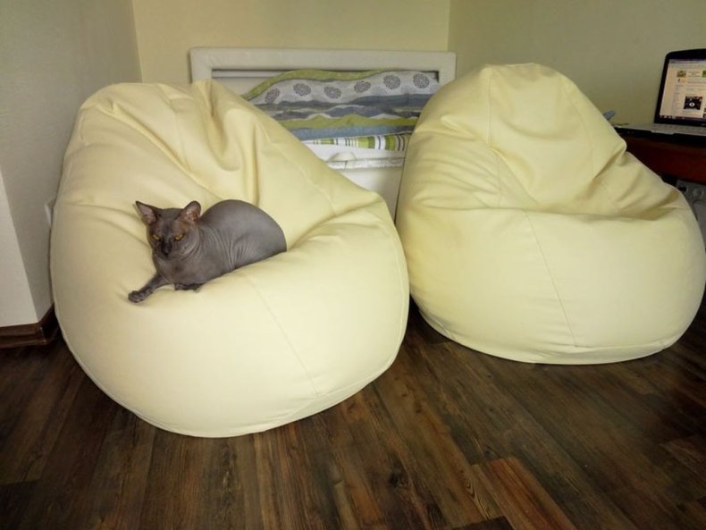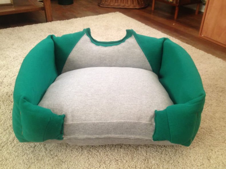 Старый свитер можно превратить в стильный предмет мягкой мебели. Весь процесс состоит из нескольких простых шагов и потребует минимум дополнительных материалов (твердое дно, наполнитель, тканевый мешок):