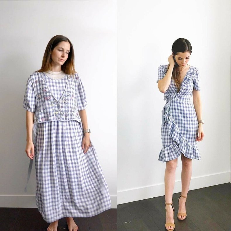 Длинные и широкие старые платья легко режутся и ушиваются, например, с использованием пояса и превращаются в стильные мини-платья. Также из старого платья можно сделать стильный топ с юбкой.