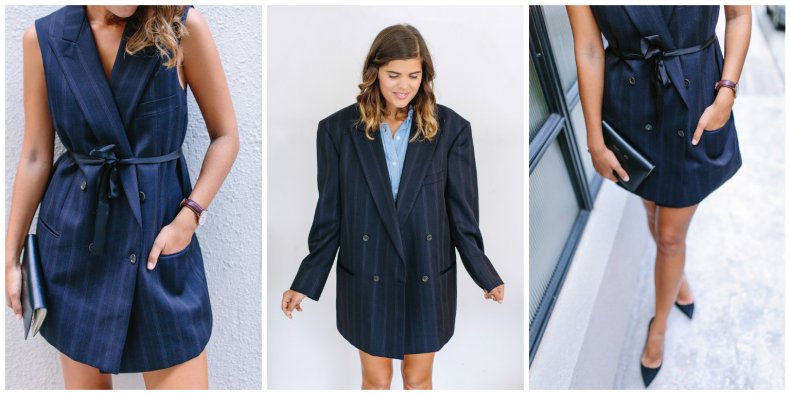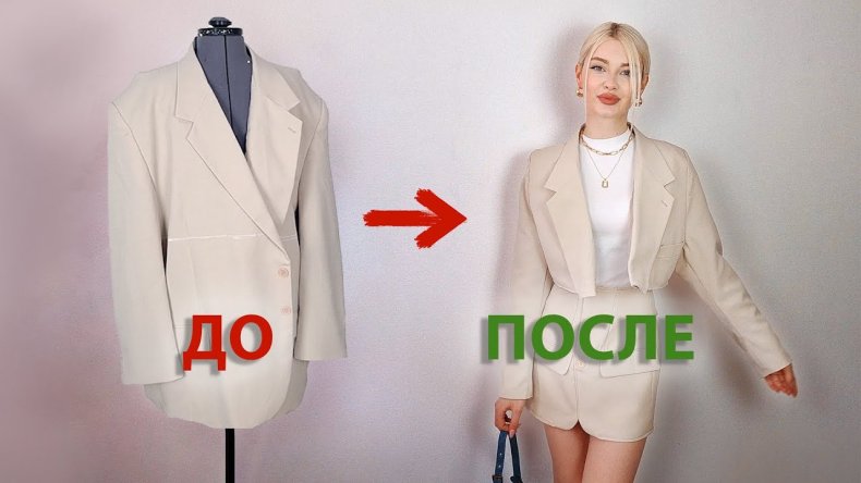 А из старого мужского пиджака можно сделать стильное женское платье-жилет, для этого придется выполнить несколько несложных операций: