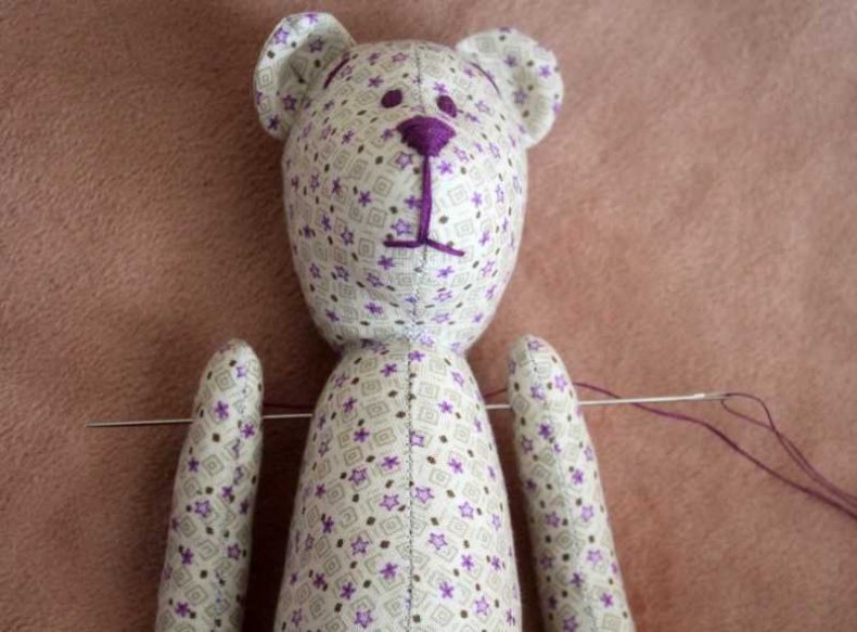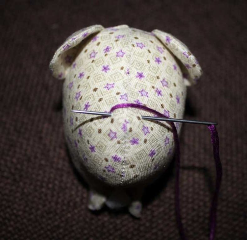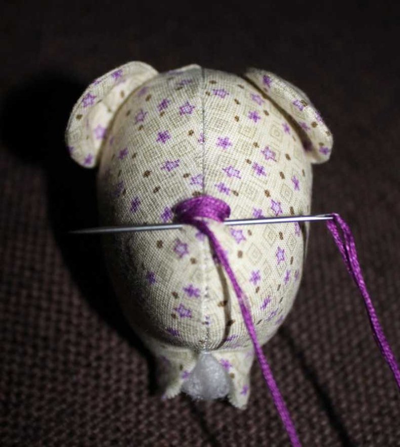 - Внутрь игрушки можно добавить наполнитель из обрезков ткани, но лучше использовать синтепон, так поделка будет наиболее легкой.