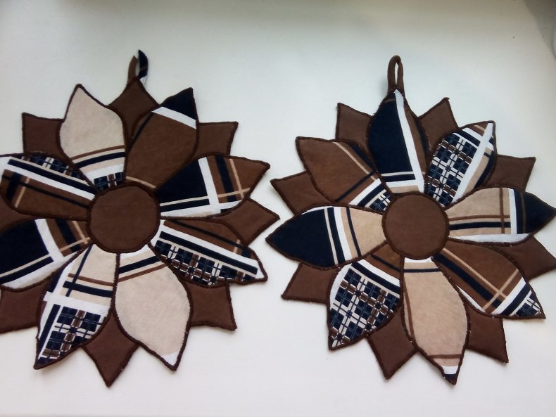 - Подставка для ручек. Из старой одежды можно сшить чехол, поместить внутрь баночку, например, от кофе.