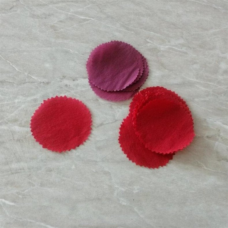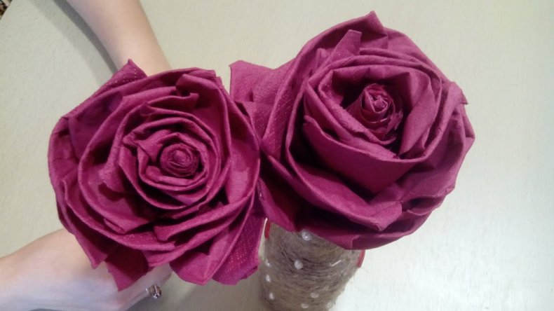 Похожим образом формируются двухцветные цветы. В ход идут салфетки контрастирующей расцветки, подходят и двухсторонние.
