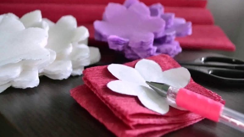 Создать такие элементы получится собственноручно. Дальше будет рассказано о том, как сформировать пышный цветок, который при желании можно сделать разного размера.