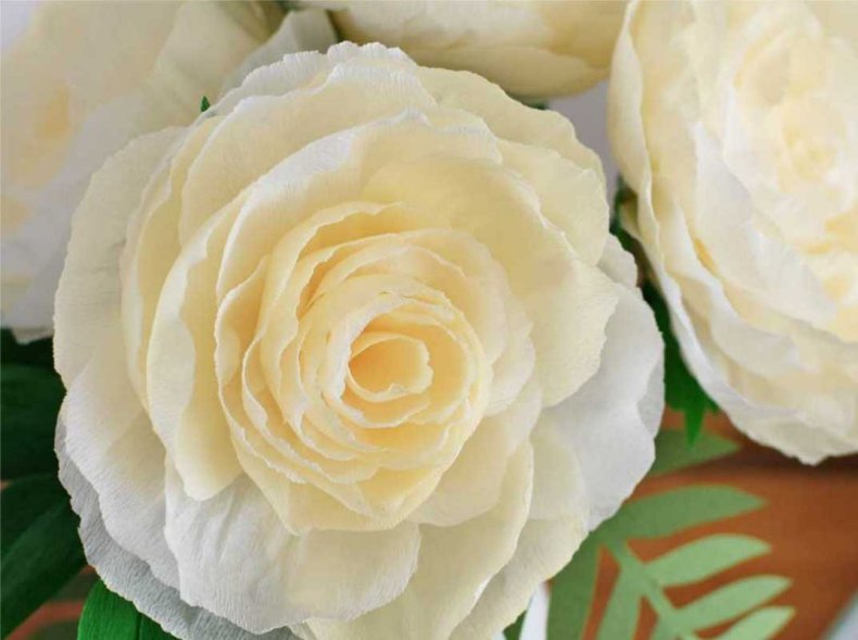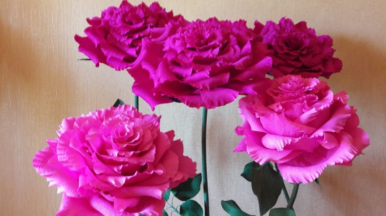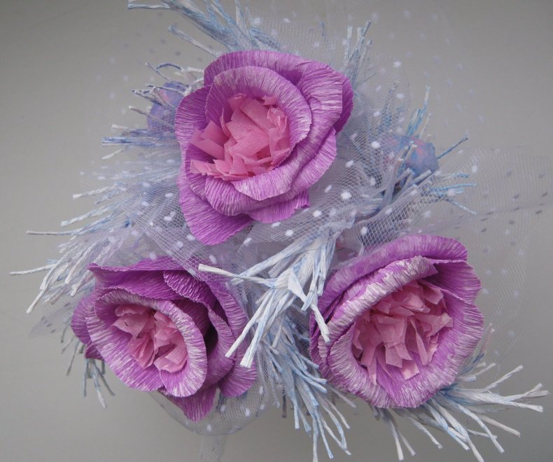 Для роз лучше всего подходит рифлёная бумага. За счёт того, что она эластичная и тянется – лепесткам можно придать выпуклую форму, изогнутую форму. Такая бумага тонкая, за счёт этого большие цветы станут воздушными, а букеты будут лёгкими.