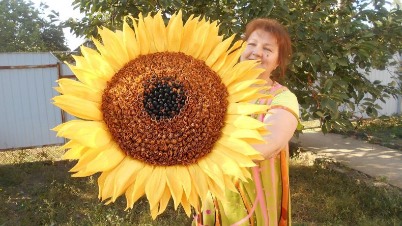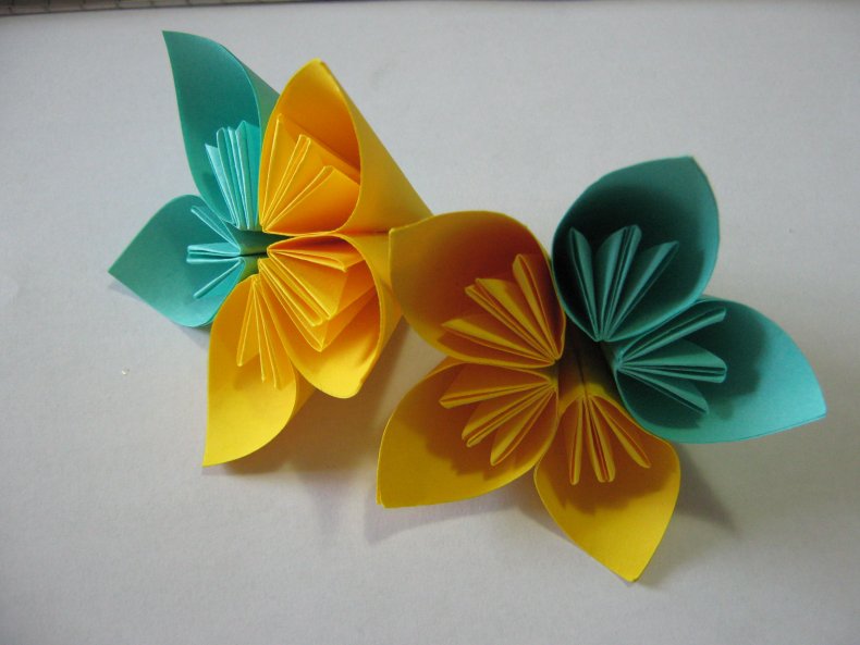 - Складываются по раздельности, а потом гармошки укладываются одна на другую – меньшая на большую, перевязывается и образуется цветок.