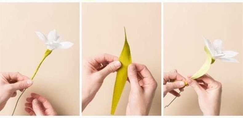 Обрамляются чашелистиками из зеленоватой бумаги. Ею также обматывается стебель.