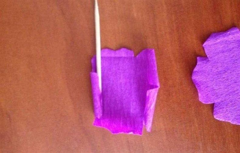 - Пальчиками делаются сгибы на каждом лепестке – это наделит цветок объёмом. Так проделывается с остальными заготовками лепестков.