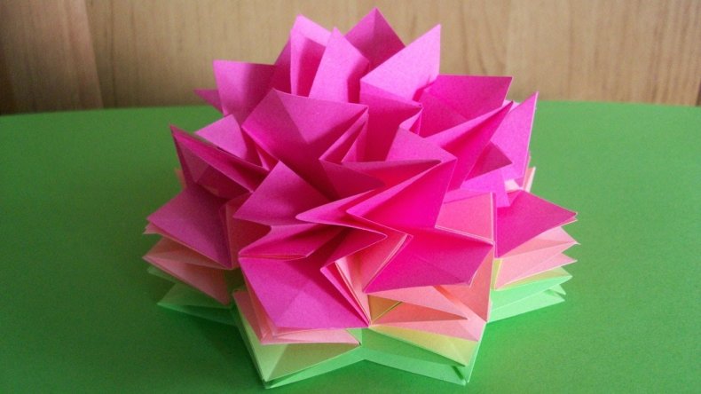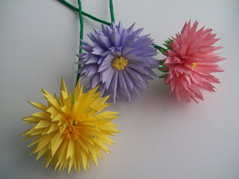 Получится эстетичный, пышный и необыкновенный цветок. Изменяя цветность бумаги, число листков, ширину гармошки, конфигурацию лепестков – получится сделать хризантемы, пионы, астры, придуманные бутоны. Каждый цветок станет неповторимым.