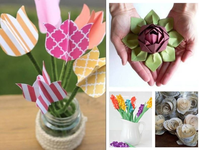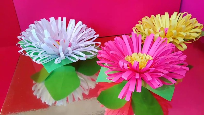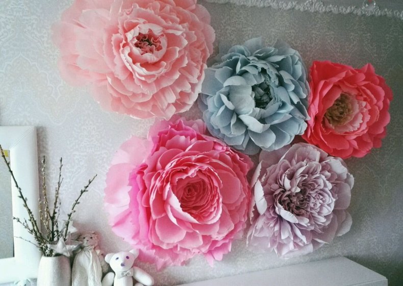 Их просто изготовить, на них не требуется большое количество материала, их можно подобрать под любой интерьер. Цветы из бумаги отлично подойдут на кухню, к гостиной, спальне или офисному убранству.